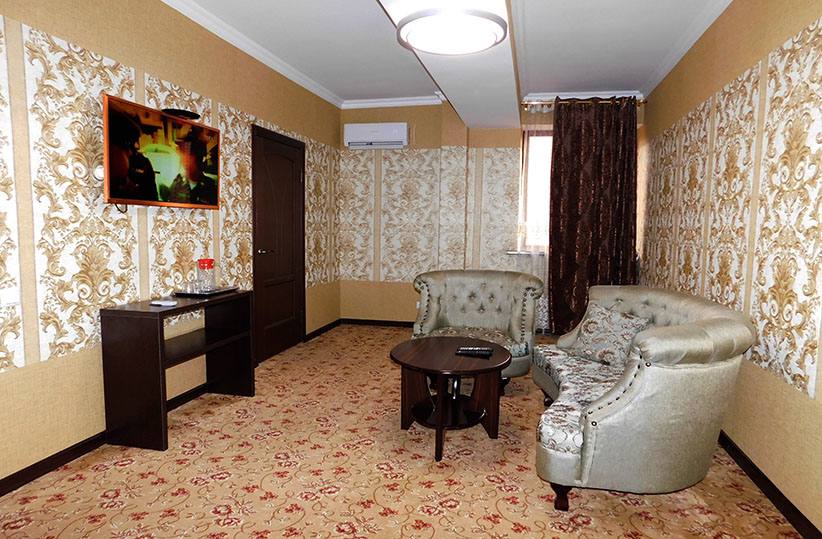 В Санатории имеются 70 номеров категорий «люкс», «полу люкс» и «стандартный». В каждом номере есть плазменный телевизор, спутниковое телевидение, WiFi, холодильник, кондиционер, фен, сейф, полный сан. узел. На основе пресной воды идет приготовление пищи, заполнение бассейна и использование ее в технических целях. В каждом номере вам предоставят халаты, полотенца, тапочки и средства личной гигиены (мыло, шампунь, зубную пасту и щетку). В здании санатория работает бесшумный лифт.