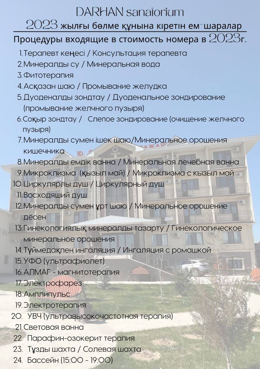 На курорте Сарыагаш грязелечение применяется в виде местных аппликаций и полного обертывания. Все санатории Сарыагаш используют минводу для процедур и лечений.