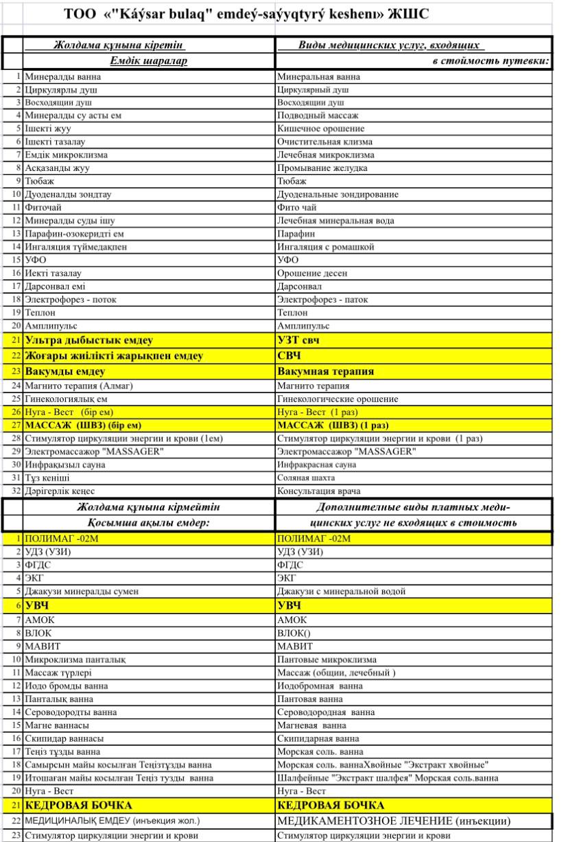 В санаторий Каусар - Булак работают квалифицированные врачи с высшей категорией.Их осмотр проводиться каждый день бесплатно.